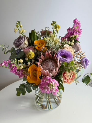 Vase option will be a glass vessel appropriate for the design.